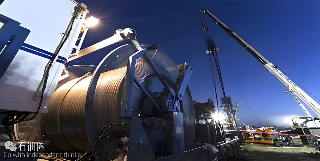 Surface equipment (reels, injectors, control panels) ensures precise positioning downhole